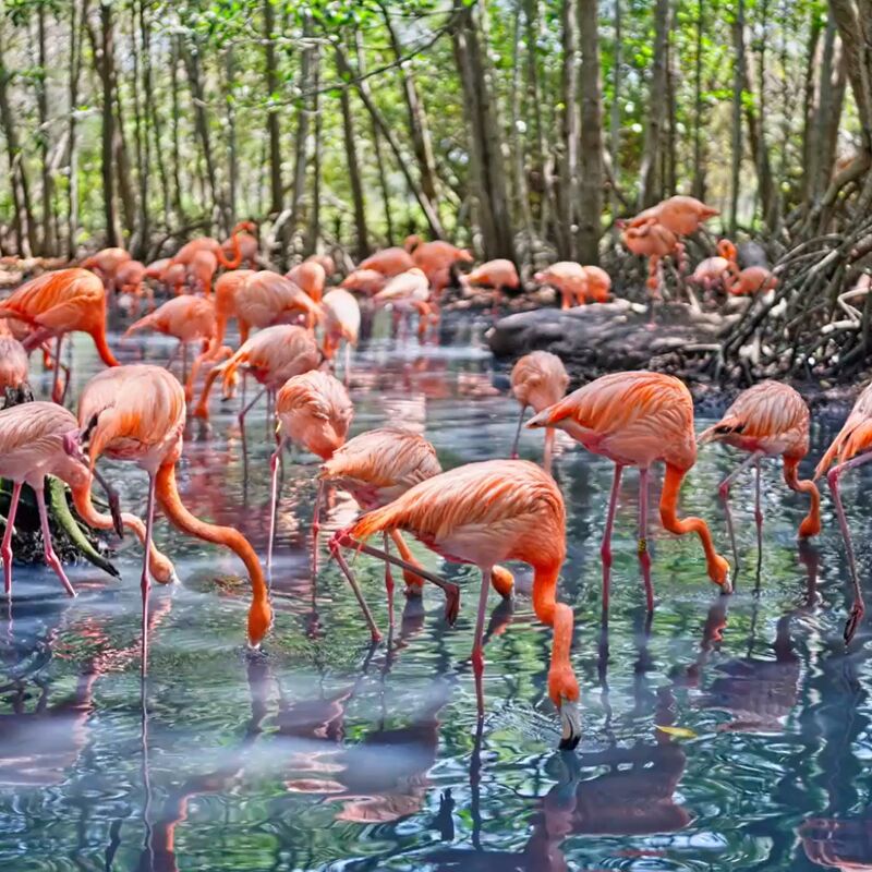 Flamingos sind farbenfrohe Vögel, die in warmen und subtropischen Regionen der Welt leben. Sie sind bekannt für ihre auffällige rosa oder weiße Federkleidung, die durch die Aufnahme von Carotinoiden aus ihrer Nahrung entsteht. Diese Pigmente sind in Algen und kleinen Krebstieren enthalten, die Flamingos fressen.