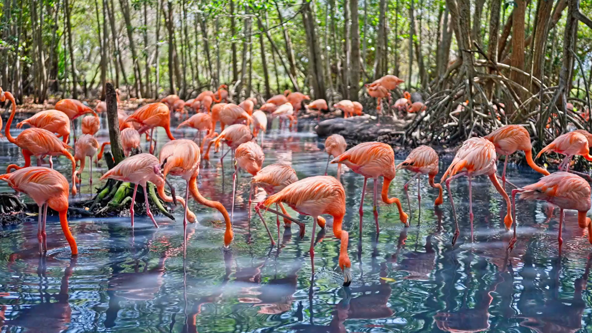 Flamingos sind soziale Tiere und leben oft in großen Kolonien. Sie sind monogam und bilden langfristige Paarbeziehungen. Ihre Nester bauen sie aus Schlamm und Pflanzenmaterial, in denen sie ihre Eier legen. Flamingos sind außerdem für ihre einzigartige Haltung bekannt, bei der sie oft auf einem Bein stehen, während das andere Bein unter dem Körper gefaltet ist.